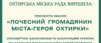 Охтирка посмертно вшанувала званням «Почесний громадянин» вісьмох полеглих воїнів На засіданні сесії Охтирської міської ради VІІІ скликання, яка відбулася 18 листопада, депутати прийняли Новости Сум 19.11.2025