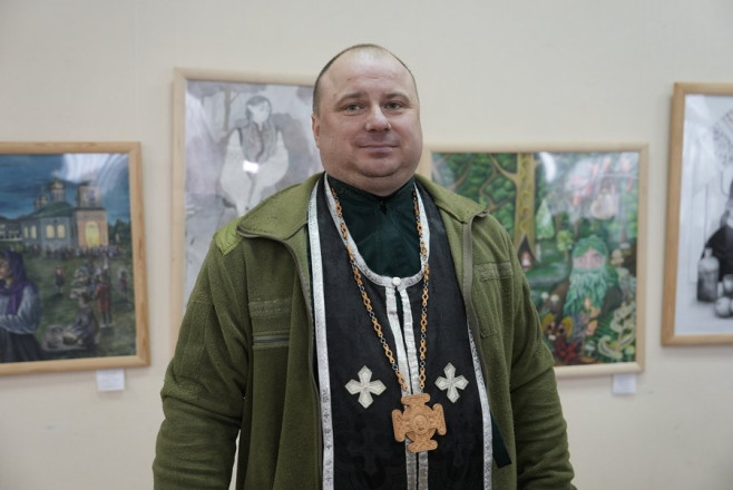 Почався захід з Національної молитви. Її прочитав капелан 117 бригади ТРО отець Сергій. Початок повномасштабної війни, говорить капелан, його застав на Миколаївщині.