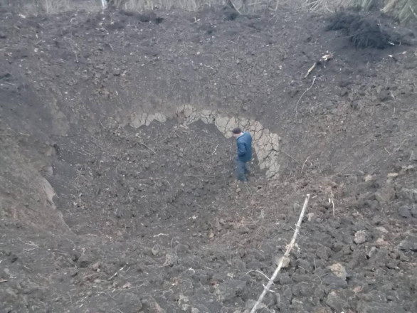 Вирва у селі Грабовське Краснопільської громади через російську атаку 26 березня, 2024 р. Фото: Василь Лавріненко