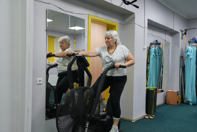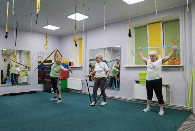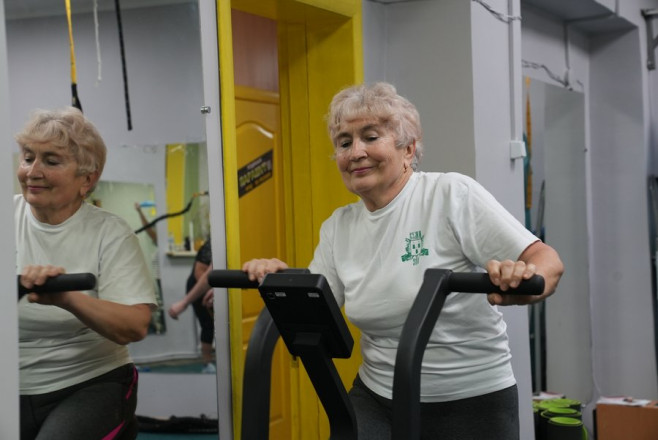"Ми раз на тиждень приходимо, спілкуємося, бо тут у нас зібралися люди 60+. Себе налаштовуєш: я повинна, я маю прийти, тому що, якщо хоча б раз пропустиш — потім, думаю, відчуєш слабкість і вже не буде хотітися. А так кожного разу, ніби не те що змушуєш себе, але тягне. Світлана, наша тренерка, підбирає вправи під наш вік — такі, з якими ми можемо справлятися", — розповіла Валентина Лук'янова.