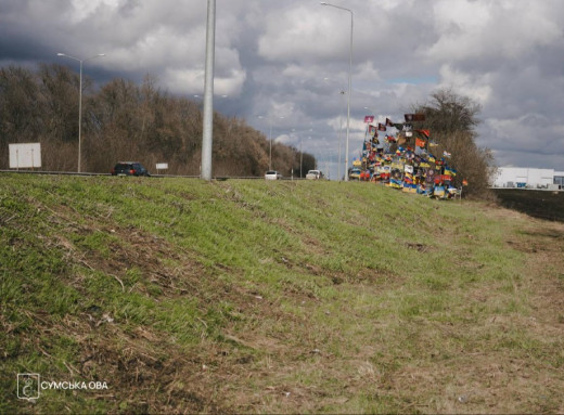 Як повідомили в Сумській ОВА, до прибирання долучилися небайдужі сум’яни — спільними зусиллями прибрали сміття та зайву рослинність. На стелі розміщені прапори бригад і підрозділів, які тримають оборону області, тому це місце є особливим для кожного, хто в’їжджає до міста.