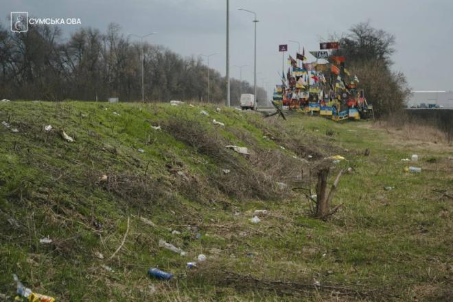 Територію біля пам’ятної стели на в’їзді до Сум прибрали після відповідного доручення керівництва області.