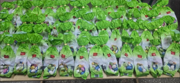 Родина Загуменних–Ніконорових, яка нині проживає у Португалії, традиційно передала до волонтерського центру «ШОСТКА-ДОБРО» великодні смаколики для дітей безвісти зниклих та загиблих українських захисників.