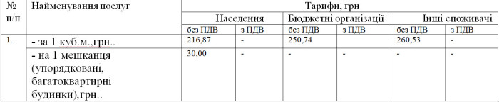 Як повідомляє ПП «Броус», тариф на 1 мешканця (упорядковані, багатоквартирні будинки) складає 30 грн.