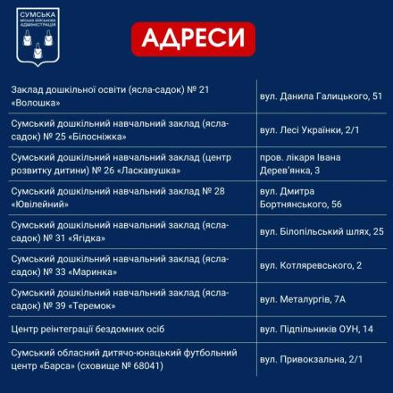 Частина Сум без світла після чергової атаки рф (адреси пунктів незламності)