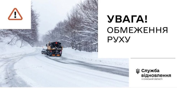 У зв’язку зі значним погіршенням погодних умов (інтенсивний сніг, хуртовина, ожеледиця) на автодорогах державного значення у Сумській області запроваджується тимчасове обмеження руху вантажних та великогабаритних транспортних засобів.