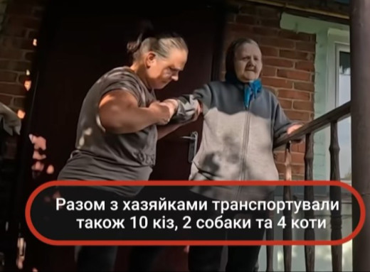 Як повідомив командир Загону швидкого реагування Володимир Москаленко, волонтери евакуювали трьох жінок, серед яких 88-річна маломобільна бабуся. Разом із ними вдалося вивезти 10 кіз, 2 собак та 4 котів.