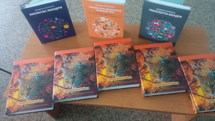Зокрема, бібліотека отримала п’ять книг популярної серії «Коти-вояки», а також три видання серії «Довідник розумника».
