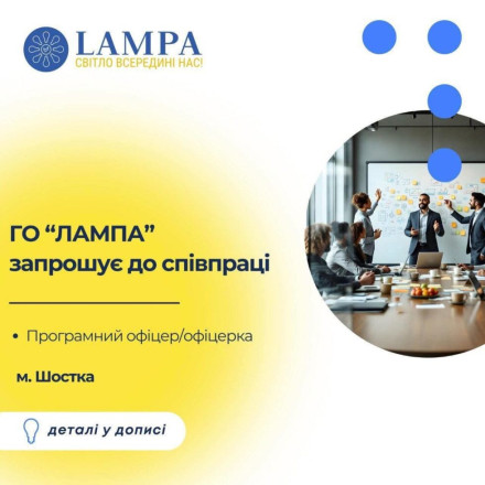 У зв’язку з розширенням діяльності на територію Сумської області громадська організація “Лампа” шукає у Шостці фахівця/фахівчиню, який(а) поділяє цінності ГО та готовий(а) працювати задля розвитку громад.