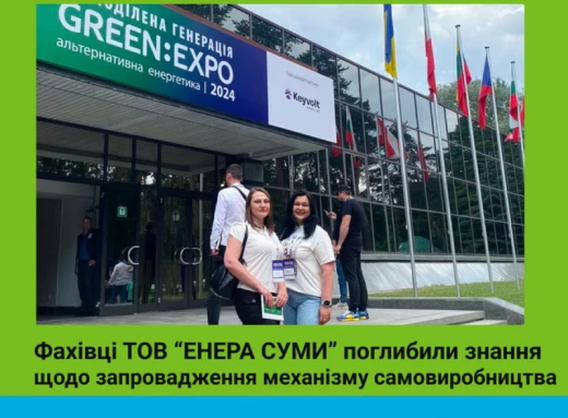 Представники енергопостачальної компанії «ЕНЕРА СУМИ» взяли участь у виставці-форумі «Green:Expo 2024», що відбулася в столиці. Серед основних тем панельних дискусій – законодавчі новації, що стосуються запровадження механізму самовиробництва, правила набуття статусу активного споживача, зелене відновлення як основа майбутньої стратегії повоєнної відбудови, енергонезалежні регіони: потреби громад та можливості бізнесу.