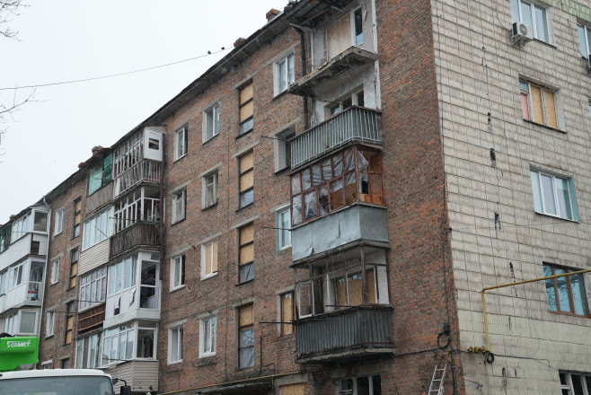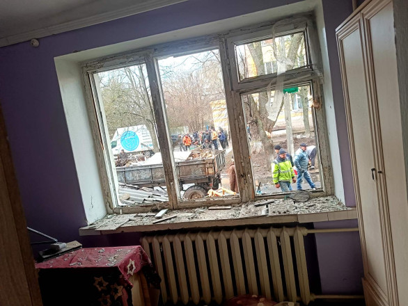 На ліквідацію наслідків виїхали близько сорока комунальників. Перша заступниця міського голови Світлана Самсоненко повідомила, що пошкоджені газові та електромережі, проводиться забивання вікон OSB-плитою та плівкою.