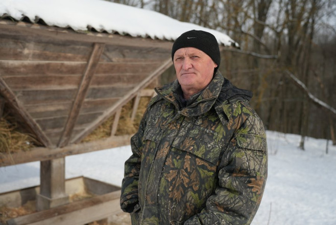 “В галузі я працюю з 1990 року. Все своє свідоме життя. Я тут живу, я цим живу”, – Олег Нечмоня, єгер Сумського надлісництва, щодня перевіряє кормові майданчики, щоб забезпечити тварин необхідними ресурсами.
