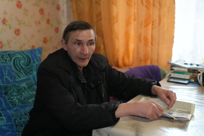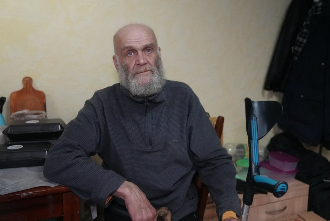 "Десять діб лежав у лікарні. 40 температура. Ще б добу — і я б згорів. Досі приймаю антибіотики. 4 березня оформили ВПО мені, але виплат ніяких ще не було. Ті, які були в мене гроші — 7 тисяч — ті, що на дрова давали, вони давно витрачені. 24 березня мене забрали з лікарні і привезли сюди. Тут мені все подобається", — говорить чоловік.