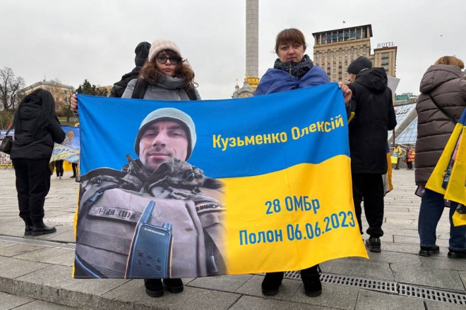 Дружина Світлана Кузьменко та кума Олексія Вероніка Кондратенко на акції в Києві, вересень 2024 року. Фото з архіву родини Кузьменків