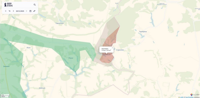 Грабовське на мапі DeepState, 28 грудня 2025 року. Суспільне Суми