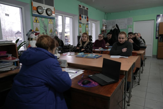 "Ми їм так розповідаємо, у нас у всіх водіїв тролейбусів у сумці лежать ключі, не лише косметичка, а й ключі для тролейбуса. У цій групі троє жінок від центру зайнятості та троє чоловіків. Ми їм розповідаємо, що це професія дуже важка і перший місяць-два потрібно звикнути. Те, що вони проходять практику на навчальному тролейбусі, вони їздять без пасажирів. Звичайно, вони вивчають контактну мережу і повністю всі маршрути і зупинки. А коли з пасажирами — це зовсім інше. Але після того як вони закінчили навчання і здали екзамен у сервісному центрі, їм дають 140 годин стажування з пасажирами", — говорить начальниця навчального центру Тетяна Наконечна.