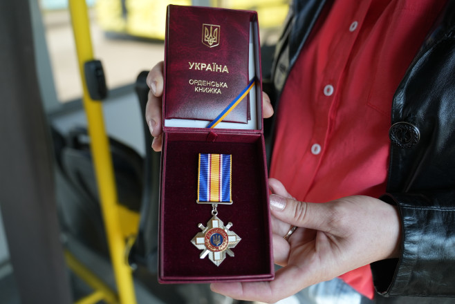За проявлену мужність Людмила Стоцька отримала орден “За мужність” ІІІ ступеня. Каже, свою нагороду вона присвятила всім працівникам КП “Електроавтотранс”, які щодня продовжують працювати під обстрілами.