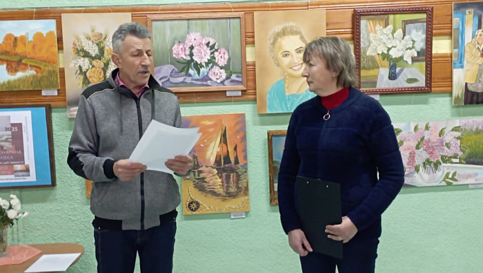 Директорка КЗ «Шосткинська публічна бібліотека» Світлана Портянко привітала пана Андрія з відкриттям мистецької виставки, побажала натхнення і нових творчих здобутків та вручила автору пам’ятне свідоцтво.