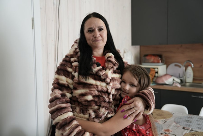 Переселенка з прикордоння Наталія розповідає, що заселилися кілька тижнів тому разом із чотирма дітьми та батьком, нині облаштовуються в одному з будинків нового модульного містечка у Липовій Долині. З рідного селища, каже жінка, довелося виїхати після посилення обстрілів російськими військами в березні минулого року.