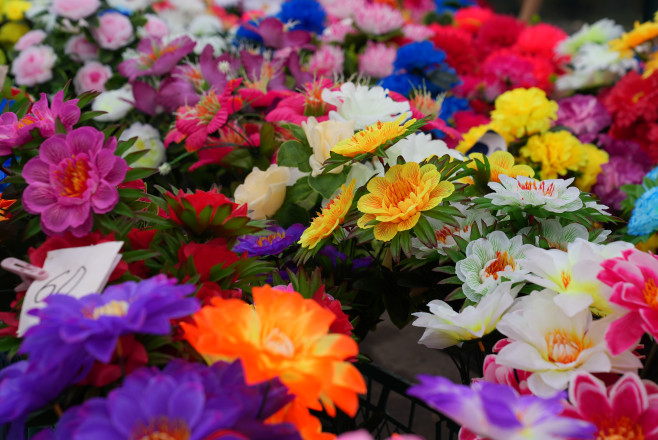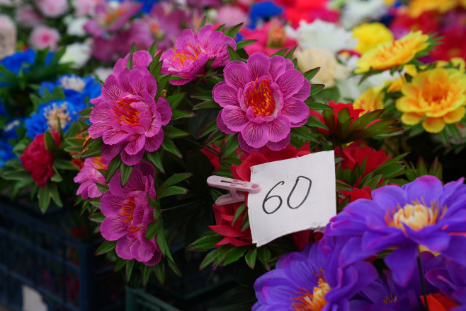 “Штучні квіти поставив і вони стоять цілий рік, вони не пропадають. А живі квіти тільки поставив і вони зів'яли. Але люди беруть і штучні й живі квіти. Кому як до вподоби”, – пояснює продавчиня.
