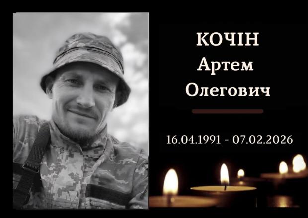 Як повідомили в мерії Конотопа, військовослужбовець Артем Олегович Кочін помер 7 лютого 2026 року під час проходження військової служби. Громада висловлює щирі співчуття рідним та близьким захисника.