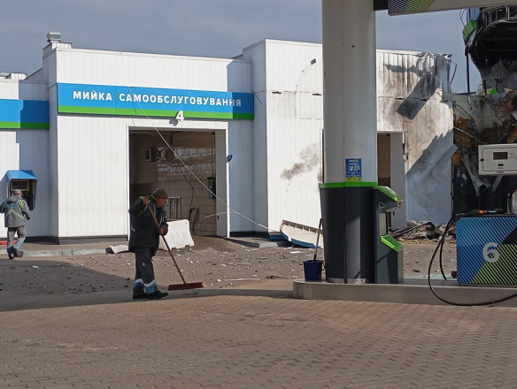 Працівники ліквідовують наслідки атаки по заправці в Сумах. Суспільне Суми