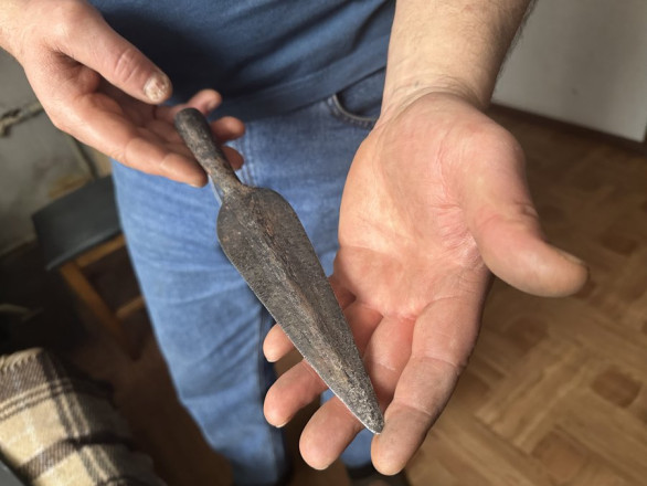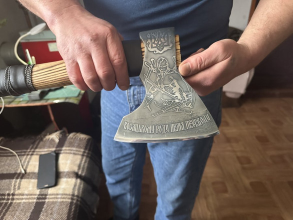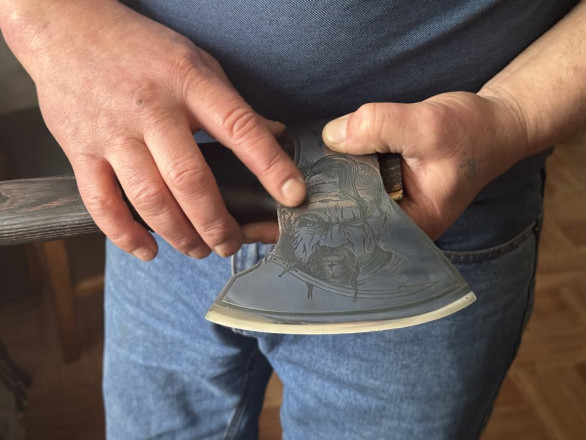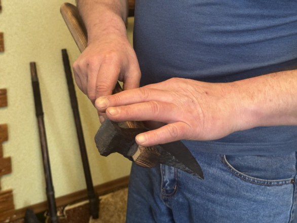 “Старався зробити руків'я автентичне тому періоду. Ніхто звідти ще фотографій нам не скидав, які були сокири”, – жартує чоловік.