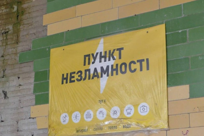 Маючи кілька годин світла на добу жителі мікрорайону шукали, де за потреби зарядити телефони. Зробити це в найближчому пункті незламності, на якому є відповідна табличка, вже не можна.