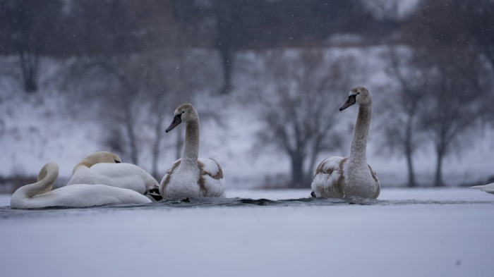 Лебеді на озері Чеха, Суми, січень 2026 року. Суспільне Суми
