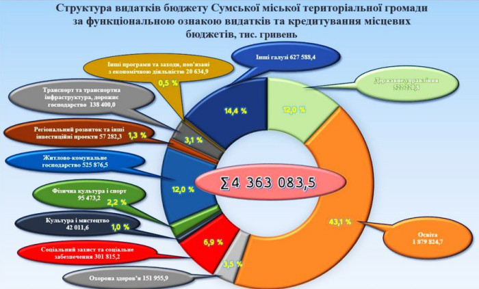 Структура видатків Сумської громади у 2026 році. Сумська міська рада
