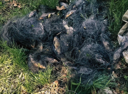 На одному з ставків правоохоронці зафіксували осіб, які за допомогою заборонених засобів лову (сіток) та гумового човна здійснювали незаконний вилов риби.