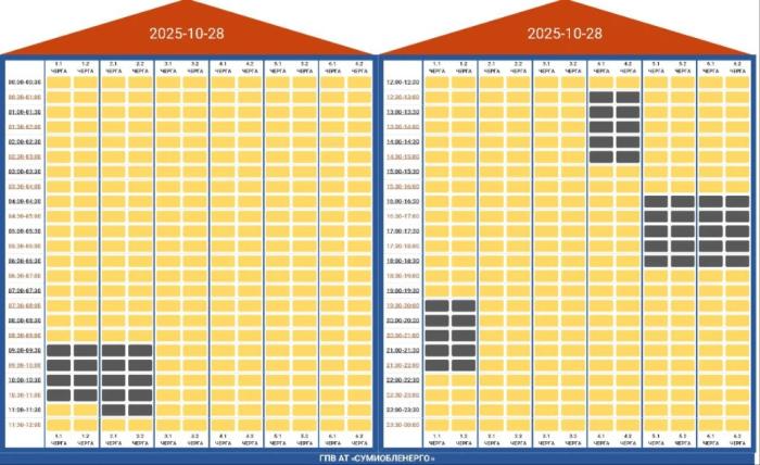 Завтра, 28 жовтня, на Сумщині діятимуть графіки погодинних відключень (ГПВ) відповідно до команди НЕК «Укренерго».