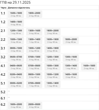 Важливо: протягом доби графіки можуть змінюватися залежно від ситуації в енергосистемі України.