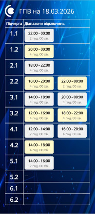 Сьогодні, 18 березня, на Сумщині діють графіки погодинних відключень відповідно до обсягів, доведених командою з НЕК “Укренерго”.