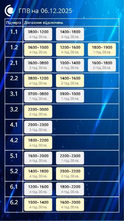 Завтра, 6 грудня, на Сумщині продовжать діяти графіки погодинних відключень (ГПВ) електроенергії, згідно з командою НЕК «Укренерго».