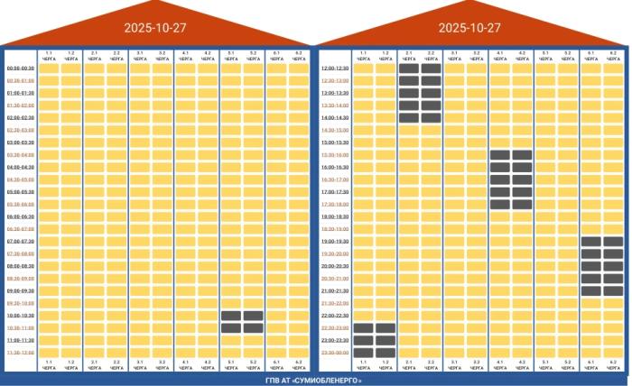 Протягом доби ГПВ можуть змінюватися залежно від ситуації в енергетичній системі. Дізнатися свою чергу та відслідковувати зміни можна на сайті АТ «Сумиобленерго» https://www.soe.com.ua/spozhivacham/vidklyuchennya та в особистому кабінеті E-Svitlo https://sm.e-svitlo.com.ua/.