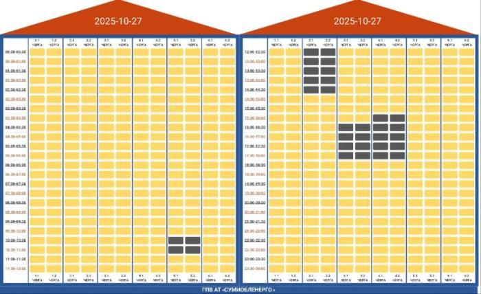 На території Сумської області з 16:00 до 19:00 діятимуть графіки погодинних відключень (ГПВ) в обсязі 2 черг.