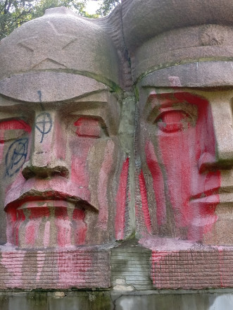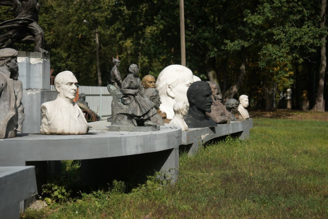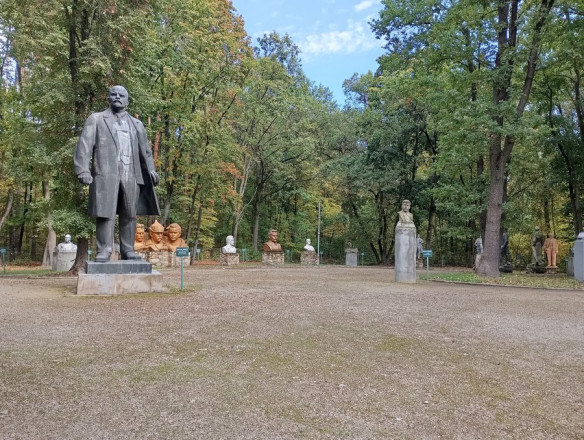 "Тут і Брежнєв, і Ленін, і Карл Маркс, і інші діячі, які уособлюють комуністичний чи радянський тоталітарний режим. Ну і вершина радянського монументального мистецтва — це пам'ятник Мухіної — робітник і колгоспниця.