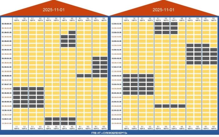 Увага: До часу відключення додається +30 хвилин на початку та наприкінці — для технічних перемикань.