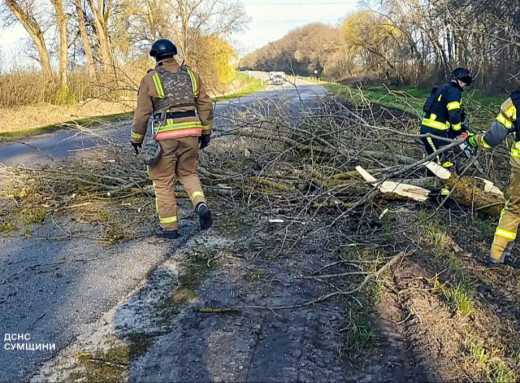 Сьогодні вранці, 30 квітня, рятувальники залучалися до ліквідації наслідків негоди, що спричинила перешкоди для руху транспорту. На лінію «101» надійшов виклик про те, що на автошляху «Суми — Київ» дерево впало на дорогу.