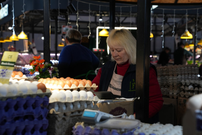 Продавчиня Олена Пархоменко торгує яйцями понад 20 років. Каже: попри здорожчання, попит на них не зменшився.