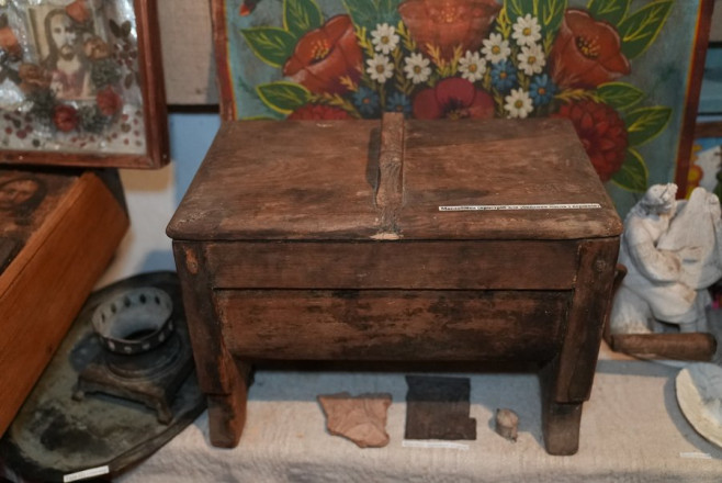 Пані Любов розповідає: раніше у Чернечій Слободі було понад 100 вітряків, школи, народне училище, дві церкви. Саме на місці однієї з них знайшли підпрестольну дошку, де згадуються не кріпосні, а “казенні” селяни, і жодного імені поміщика. Найдавніша частина експозиції – це різноманітні знаряддя праці, найстаровинніший експонат – кінські пута, знайдені у металобрухті. Ними сплутували ноги коней, коли відправляли їх у нічне пасовище. Старовинні предмети побуту і посуд – це не тільки свідчення епохи, іноді це ілюстрація народних висловів. Як, наприклад, ось ця діжа для тіста, яка мала бути складена з певної кількості дощечок, тобто клепок, щоб хліб добре сходив.