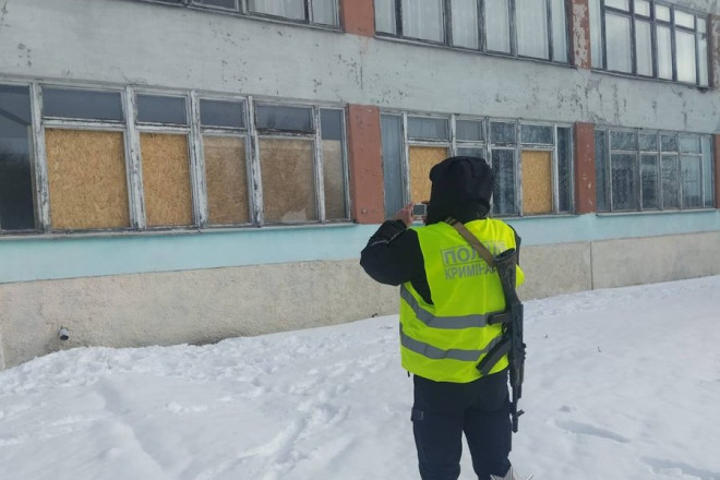 Поліцейський фіксує наслідки влучання. ГУНП у Сумській області