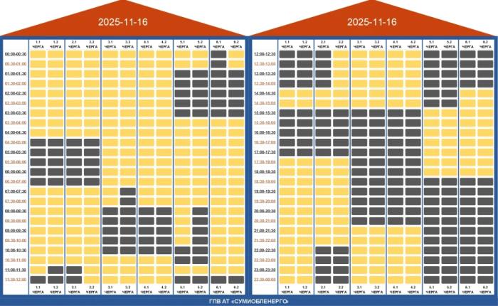 НЕК «Укренерго» вчергове внесло зміни щодо застосування графіків погодинних відключень на Сумщині, посиливши обсяги обмежень у другій половині дня 16 листопада.