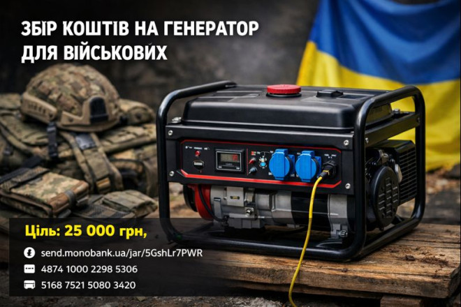 Волонтерка Влада Воробйова оголосила про відкриття термінового збору коштів на придбання генератора для потреб військовослужбовців. Обладнання необхідне для безперебійного виконання бойових завдань в умовах можливих відключень електроенергії.