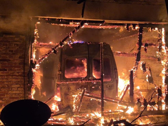 Того ж вечора ворог поцілив по території лікарні – сталося загоряння гаражів та господарських приміщень, автомобілів.
