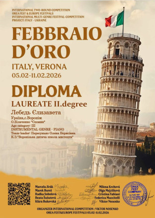 Учениця Воронізької дитячої школи мистецтв Єлизавета Лебєдь блискуче представила Шосткинщину на Міжнародному конкурсі «Febbraio D’oro», що відбувся у місті Верона (Італія). Дівчина посіла ІІ місце.