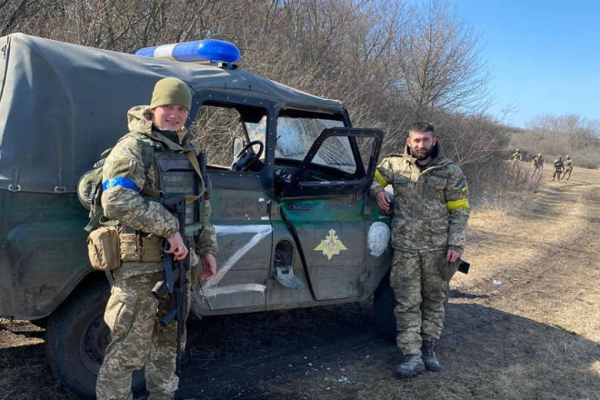 Українські військовослужбовці біля трофейного авто. Фото Юрія Гуляка