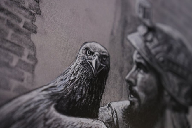 Ця робота — перша на тему війни, створена Володимиром в укритті під обстрілами.