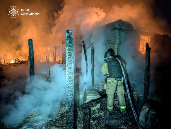 Ворог завдав масованого удару по селу вночі, коли люди спали. Значних руйнувань зазнали оселі громадян та нежитлові будівлі. Виникли масштабні пожежі, повідомляють у ГУ ДСНС Сумської області.